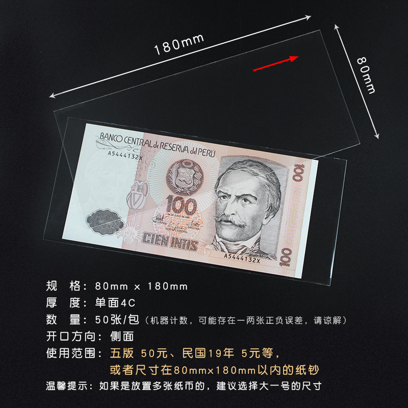 Mingtai Note Protection Bag Five Edition 50 RMB 70th Anniversary of the Note National 19 Year 5 RMB 7 8cm*18cm