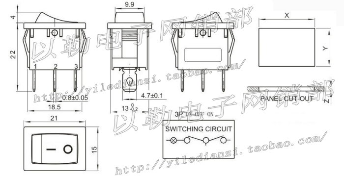 High current boat switch double cut 2-speed 3-foot rocker switch 10A250V double-pass rocker switch power switch