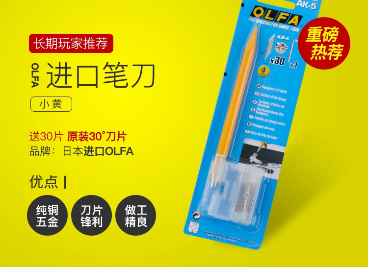 Japan OLFA small yellow AK-5 rubber stamp engraving special pen knife paper carving leather model film blade