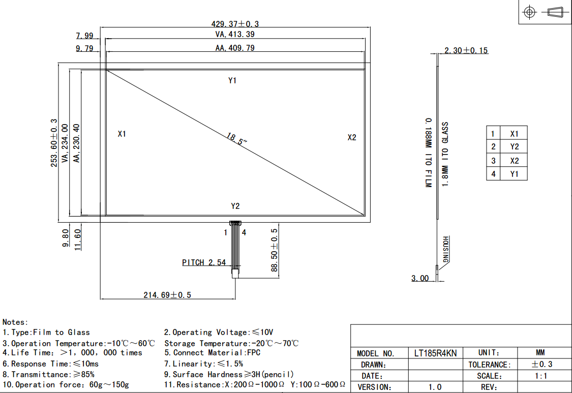 18 5-inch ultra-thin 0-5MM touch 4-4 resistance screen 18 5 inch industrial-grade All resistance touch screen