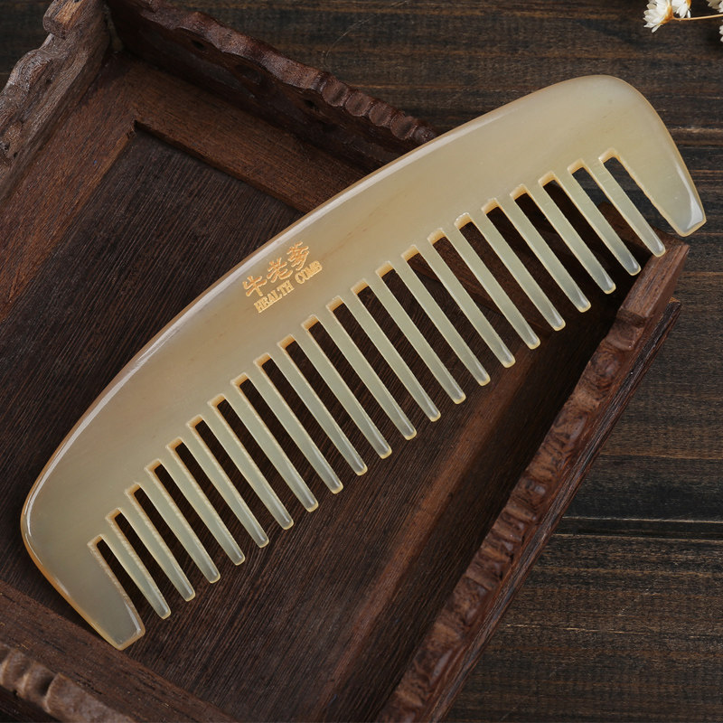 Horn comb Natural pure long hair wide tooth curly hair comb Massage comb Horn comb for women and men with lettering