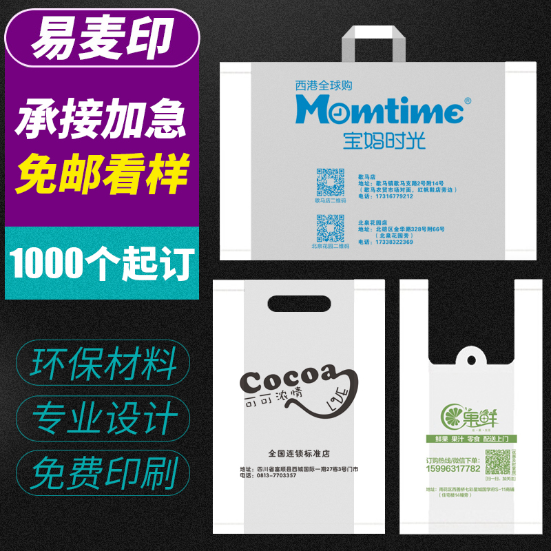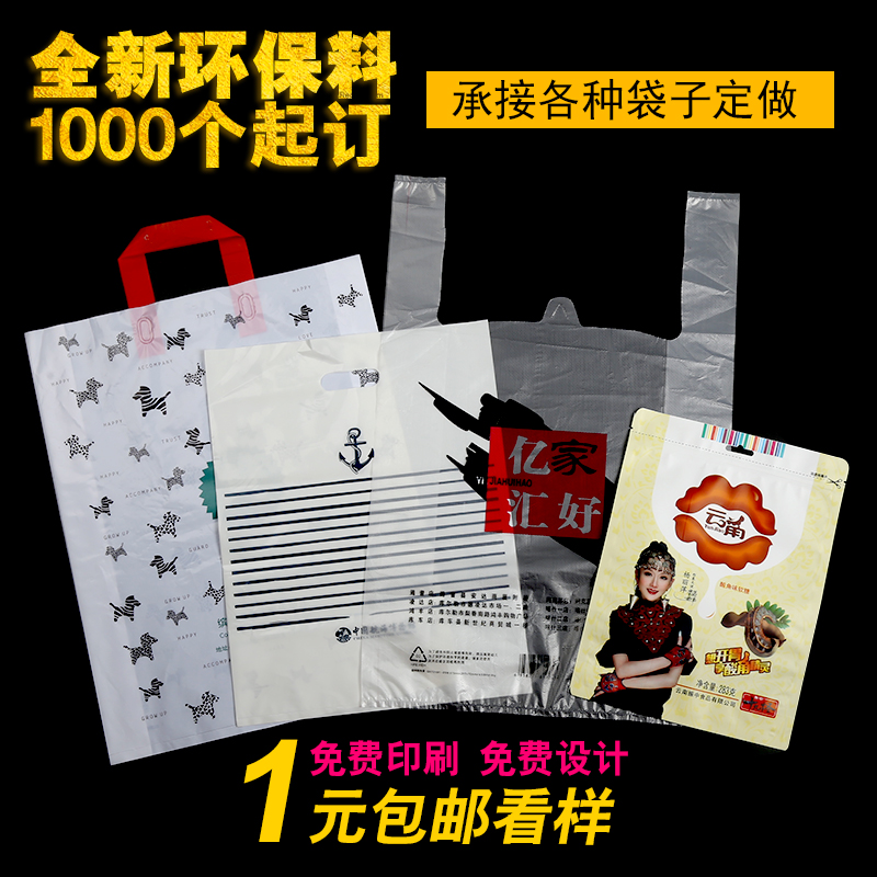 Plastic Bags Custom Suitcases Takeaway Packaging Printing Logo Shopping Food Packaging Home Plus Thick Bags Set To Do