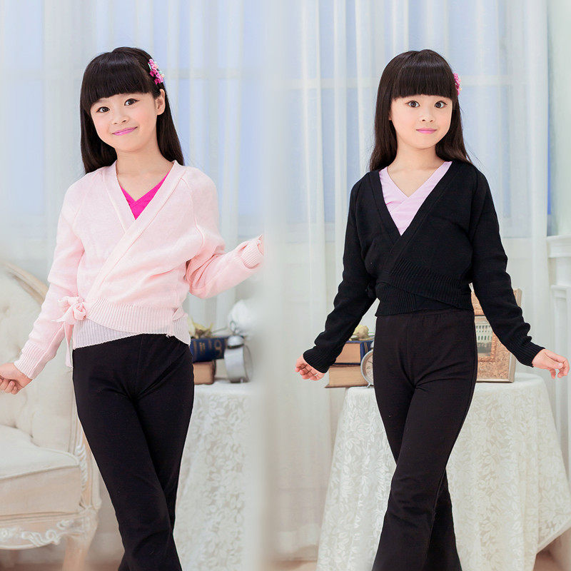Special dance clothes children's practice sweater long-sleeved girls tie sweater children's shawl jacket thickening autumn and winter