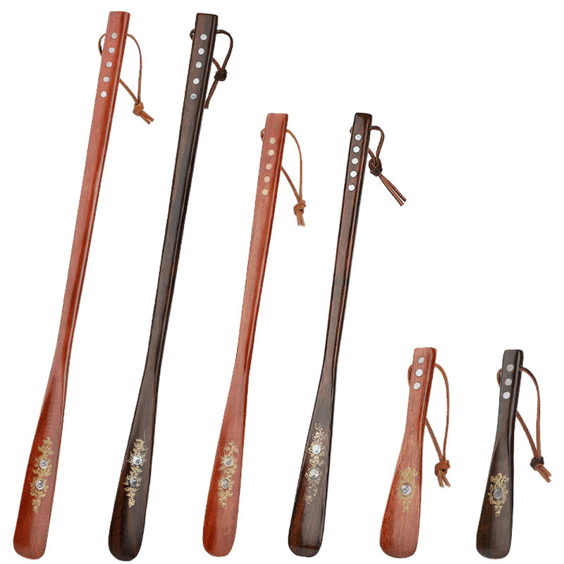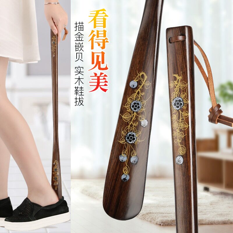 Long-handled shoehorn shoe lift Long-handled shoe pick leaping solid wooden shoe pull household shoe dial Shoe-wearing auxiliary device