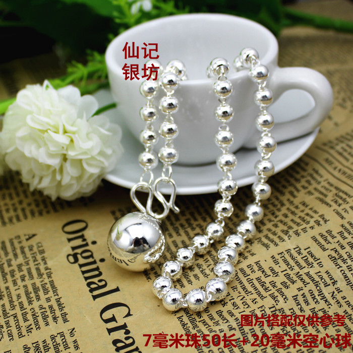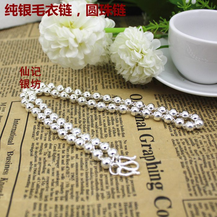 990 Silver Necklace Girl Link Ball Sweater Link for Children's Lady Han Edition Silver Buddha Ball Link