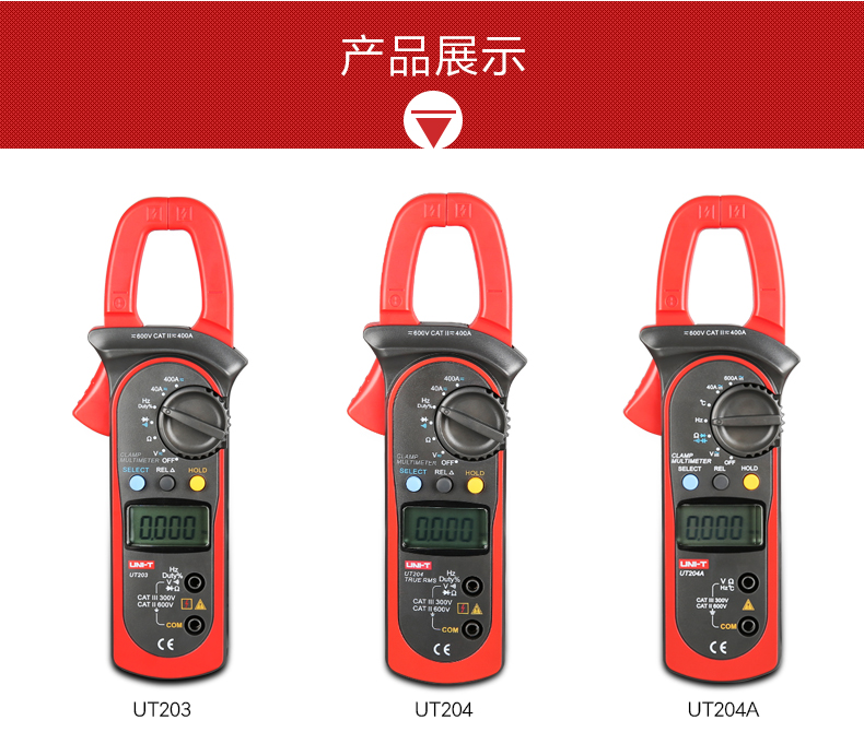 UNII-T Youlid UT204A AC/DC pliers-shaped Current Table Temperature Capacitance 600A Number of Explicit Current Tables