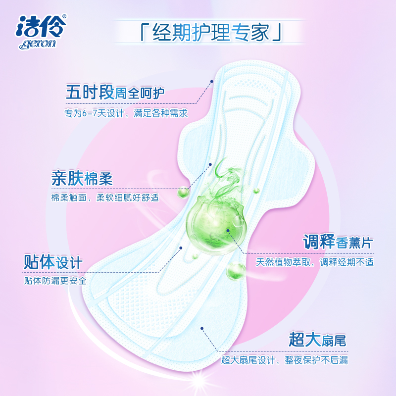 Jieling whole-process nursing cotton soft breathable anti-side leakage mixed with 23 pieces of 10 packs of sanitary napkins for the whole month with fragrance