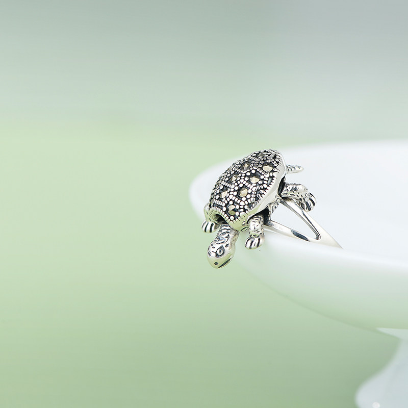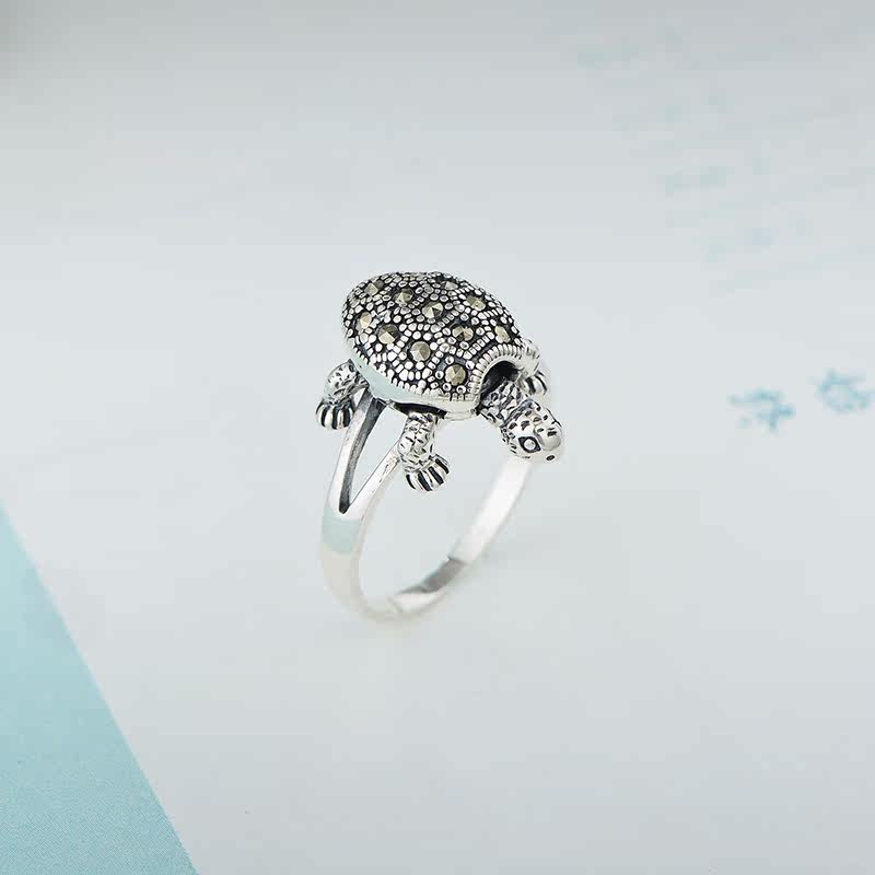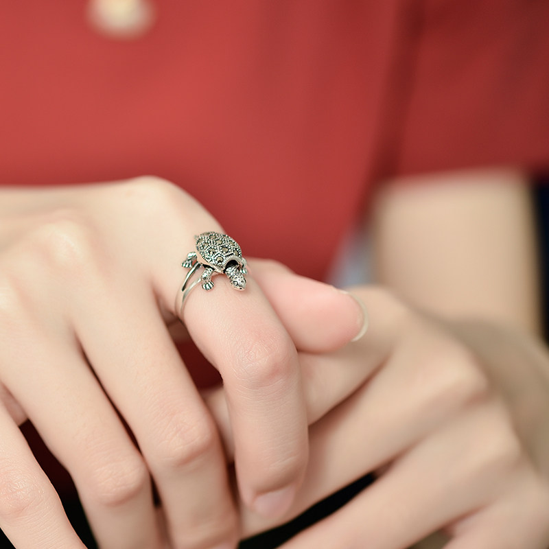 Very Thai S925 silver turtle ring female retro style cute personality food ring Thai silver jewelry can be active