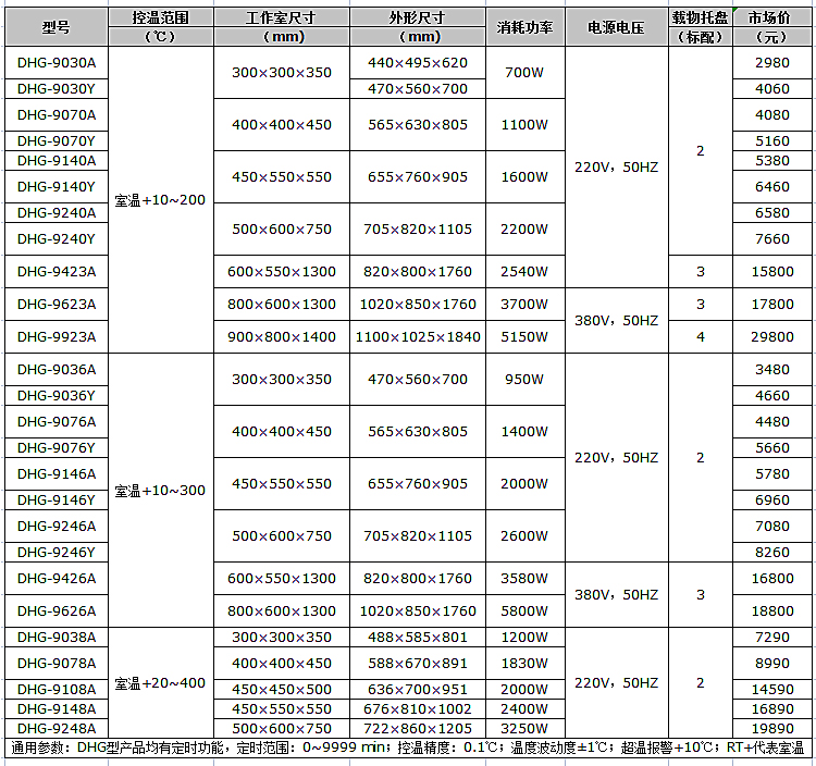 DHG-9030A (Max 200℃)DHG-9070A (Max 200℃)DHG-9140A (Max 200℃)DHG-9240A