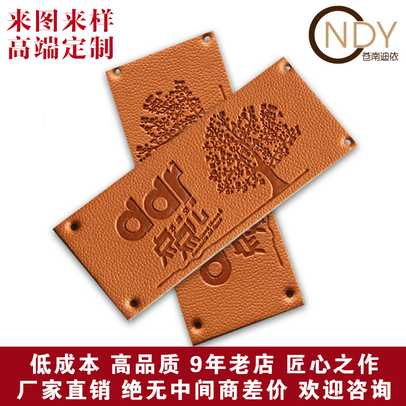 Customized design hand-made small label indentation Jeans leather label leather brand lettering drop plastic logo waistband side label