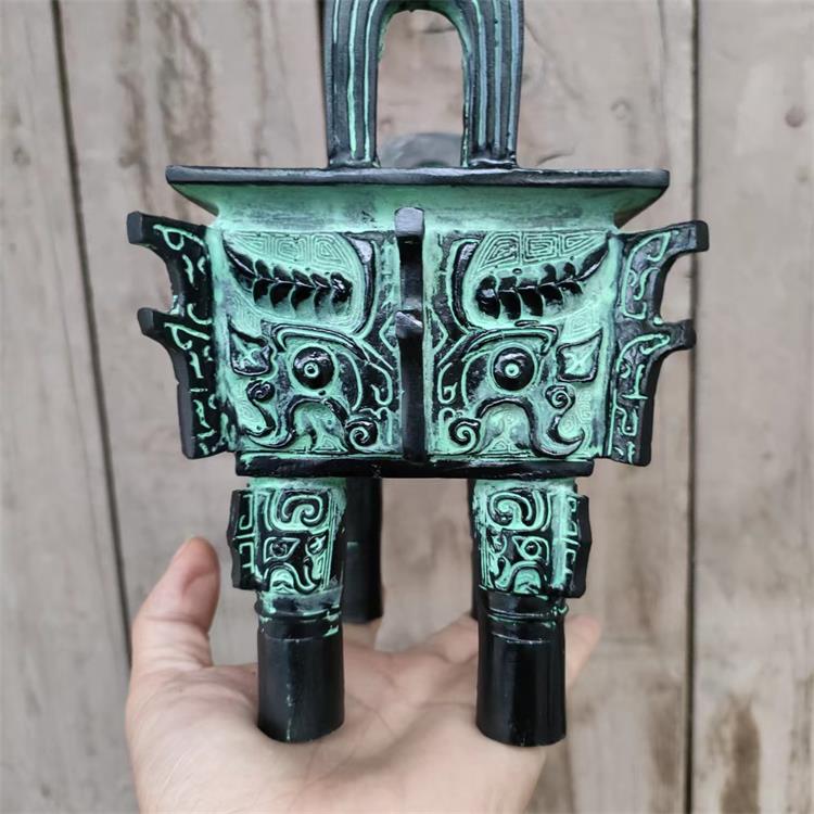 Antique Bronze Ware Pendulum of Beast Face Tripod Ancient Play Collection Miscellaneous Bronze Ware Incense Stove Fang Tripod Head Tripod-Taobao