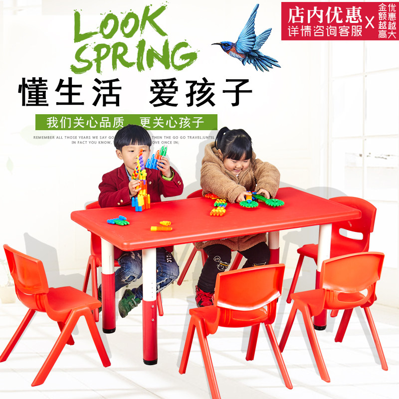 Kindergarten table Baby writing and drawing table Children's plastic hand thickened learning desk can lift desks and chairs