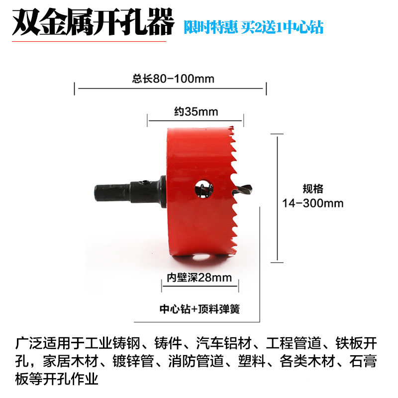 Bimetal Duct Drilling Machine Woodworking Plastic Plasterboard Drill 48-75-150mm Woodworking Reaming Drill Bit