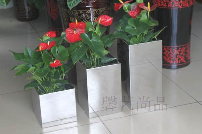 Stainless steel flower pot metal vase swing piece modern decorative vase green plant on floor square flower