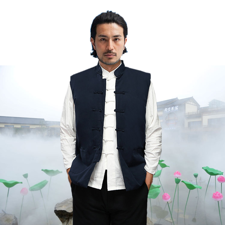 Autumn Winter New Mid Style Clothing Pure Cotton Old Coarse Cloth Men Sleeveless Tang Dress Warm Horse Vest Cotton Kan Shoulder Machia