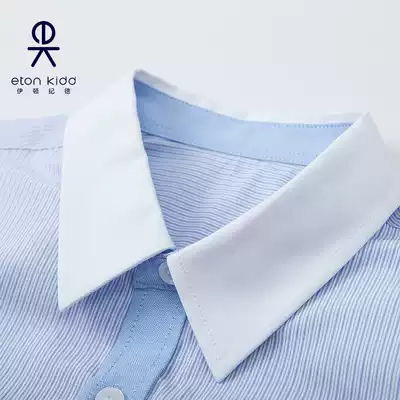 Eaton Gide school uniform male and female middle school children striped white collar shirt cotton long sleeve shirt 10C160