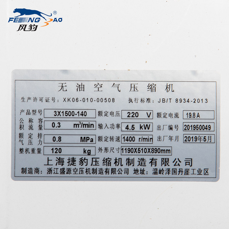 Shanghai Fengbao 420-7 air compressor silent oil-free air pump dental spray paint carpentry air compression