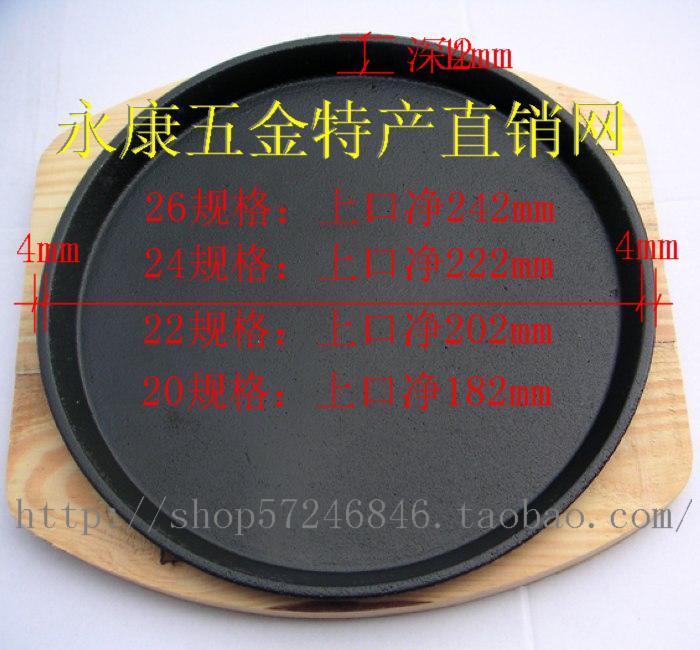 Cast iron uncoated 20 22 24 26 28 30cm disc round iron plate BBQ plate Korean style wooden mat