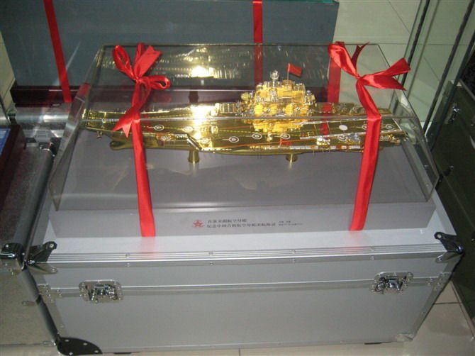 Touch China's Liaoning aircraft carrier finished alloy model Liaoning ship model collection 1:500 gold plated version