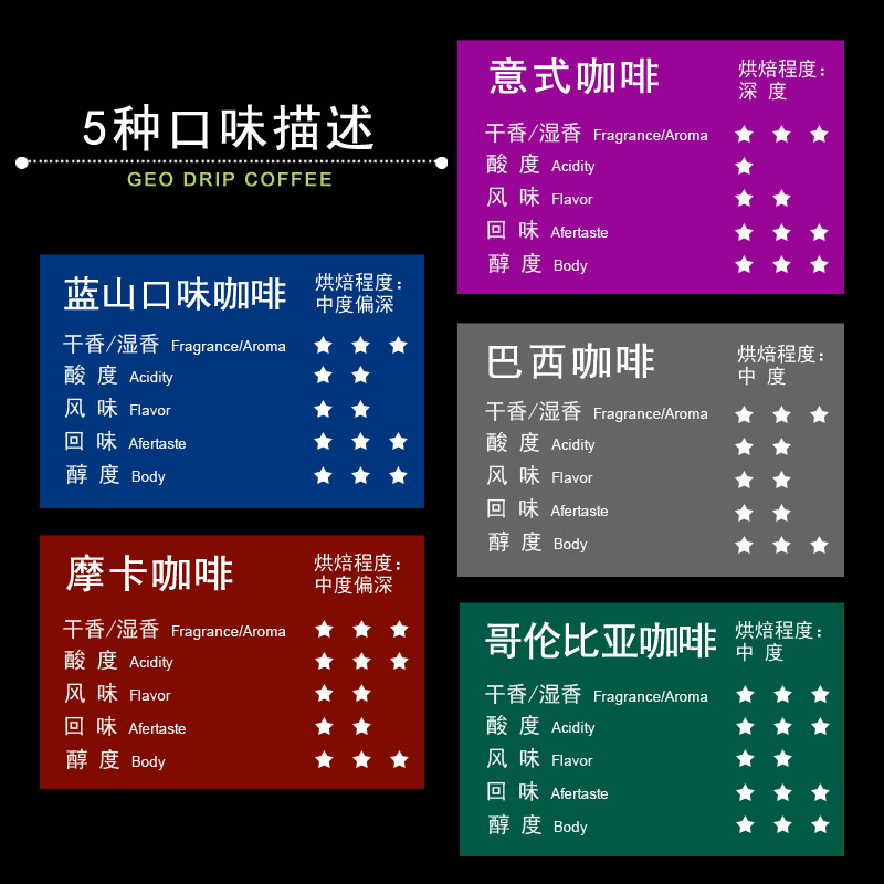 Blue Mountain flavor 50 cups Italian flavor 50 cups Brazilian flavor 50 cups Mocha flavor 50 cups Colombian flavor 50 cups (taste recommended)Mixed flavor a total of 50 cups