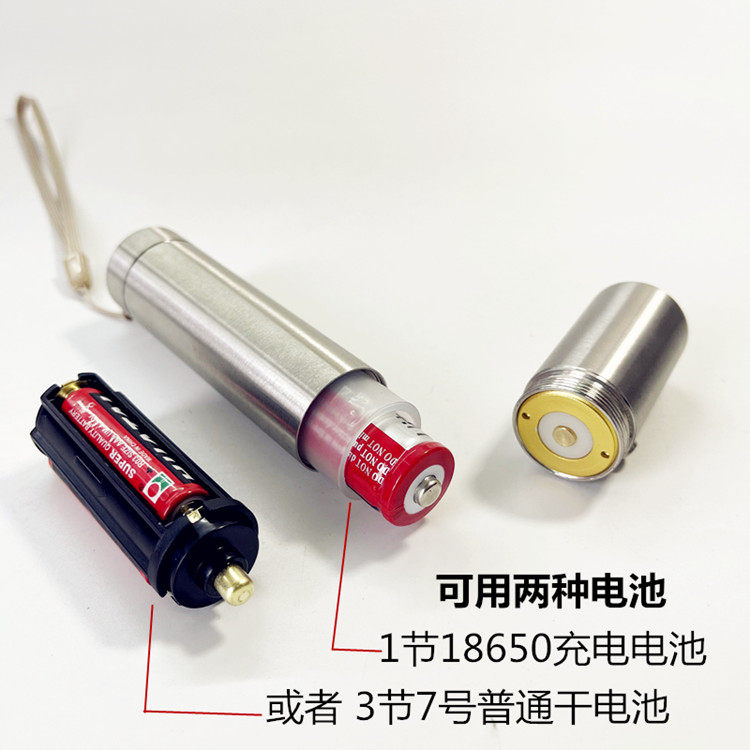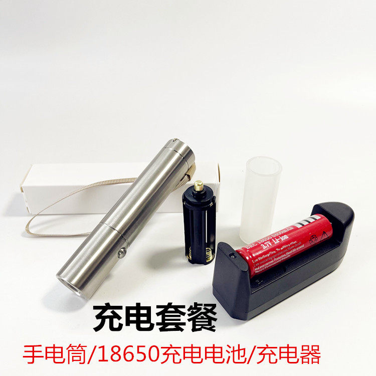 Straight drum in switch stainless steel intense light flashlight rechargeable 18650 Double with small steel cannons outdoor flashlight Home