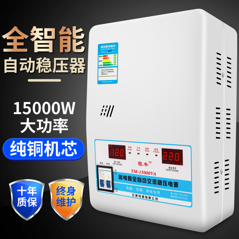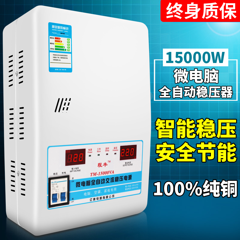 Voltage stabilizer 220v automatic household high-power ultra-low voltage pure copper air conditioner refrigerator voltage stabilizer voltage regulator 15000w