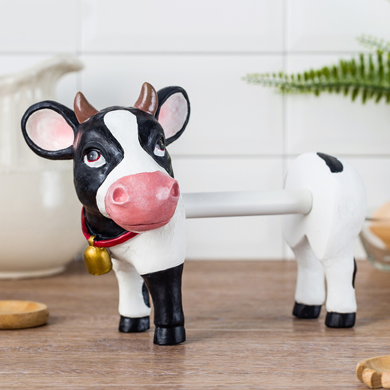 Roll paper towel rack desktop cute cow roll paper box round kitchen cartoon creative animal dining table roll paper towel tube box