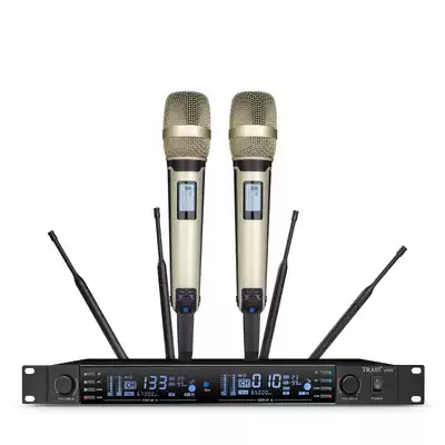 Double collar clip double head wearing headset one dragging two hand holding (black) one dragging two hand holding (champagne color) UR2D handheld microphone