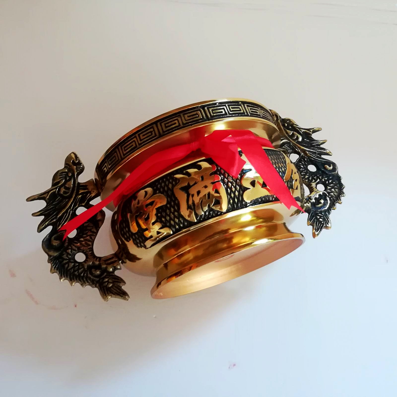 Buddhist supplies Buddha furnace Copper furnace Incense circle incense burner Double Dragon copper incense burner Shrine ornaments