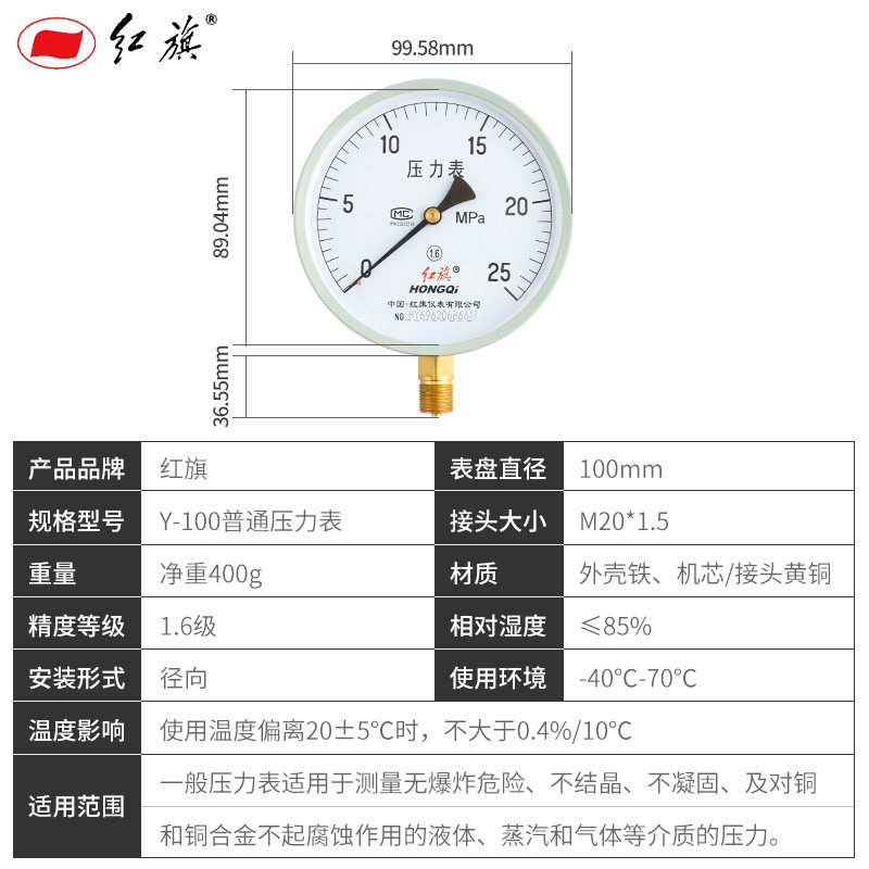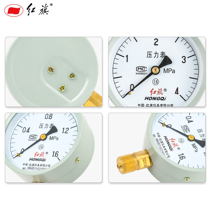 Red flag instrument Radial axial vacuum pressure gauge Y100 air pressure water pressure gauge Household tap water meter 0-1 6mpa