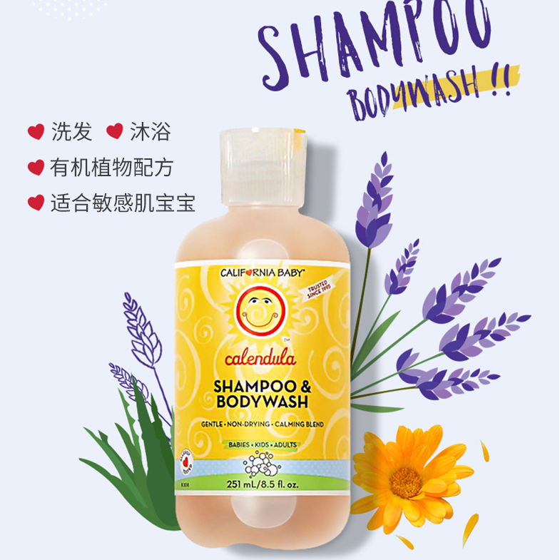 California Baby Golden Flowers Newborns Shampoo body lotion Two-in-one, pure natural remission of rash 251ml