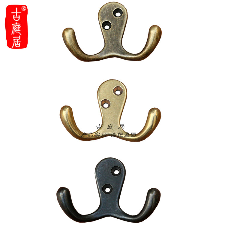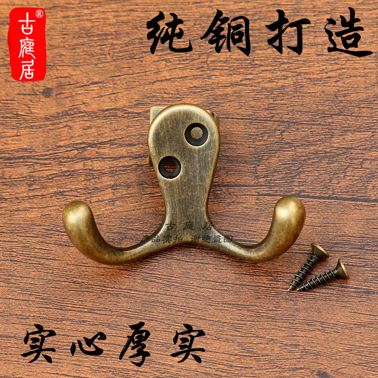 Genguan Copper Hook Key Containing Door Rear Clothe Hood Hook Retro Doorway Clothes Rack Wall-mounted Copper Trim Double Head Hook
