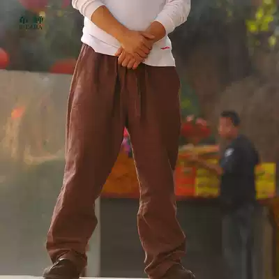 Cloth cicada new spring and summer men's cotton and linen multi-color variety of yoga loose wide-leg pocket pants handmade buckle Ruyi pants