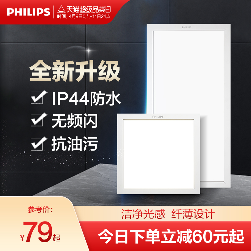Philips integrated ceilings LED flat panel lamp ultra-thin embedded aluminum buckle kitchen toilet lamp 300*600