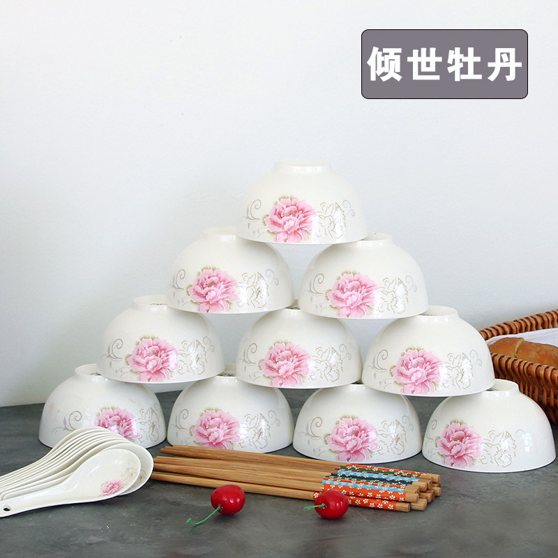 4 5-inch dining bowl ceramic rice bowl Chinese household microwave bowl rice bowl 10 suits high temperature resistant