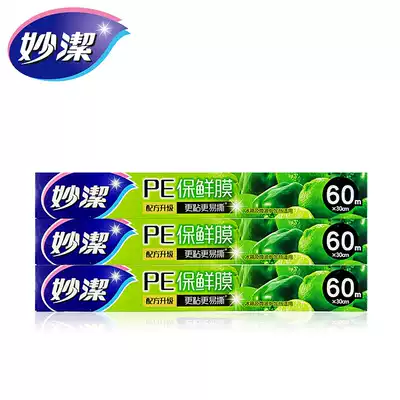 Miaojie boxed PE food cling film 3 boxes of wrap film refrigerator vegetables and fruits fresh