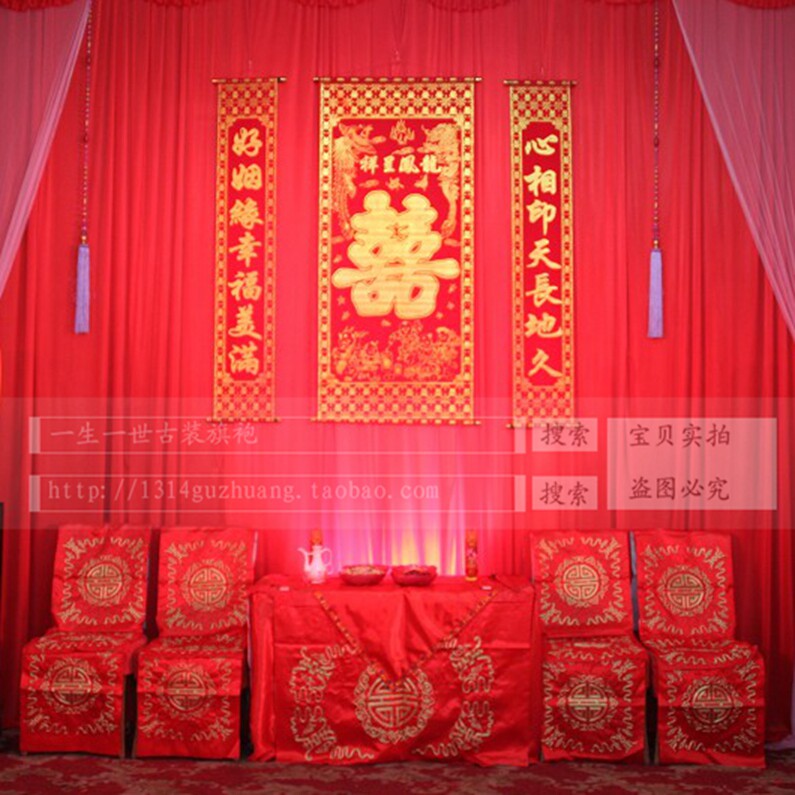 Chinese Wedding One Table Four Chairs Table Cloth Chair Cover Chair Cushion Table Circumference Chinese Wedding Clothing Items Wedding items Festive Items Festive Items