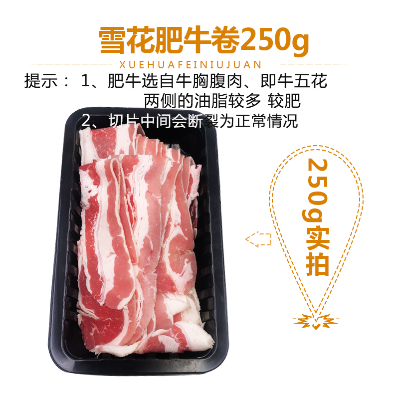 The United States IBP 245 factory grain feed imported original cut snowflake fat beef roll beef pork belly slices hot pot ingredients 250g