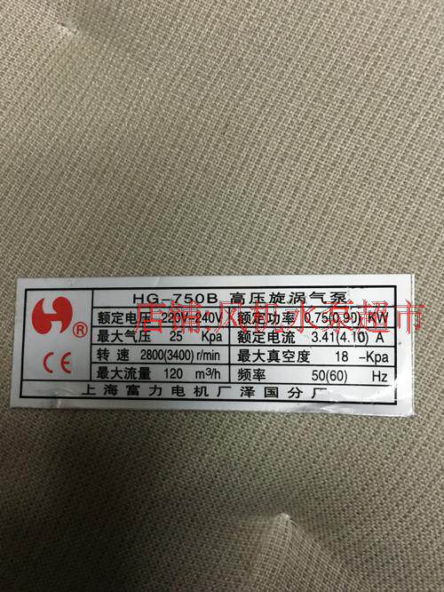 Shanghai Fulli Swirl Air Pump HG-750SB 750B Aerator High Pressure Blast Ring Blower