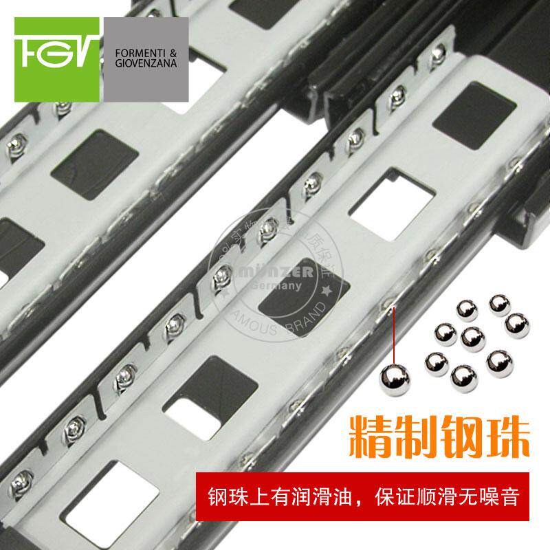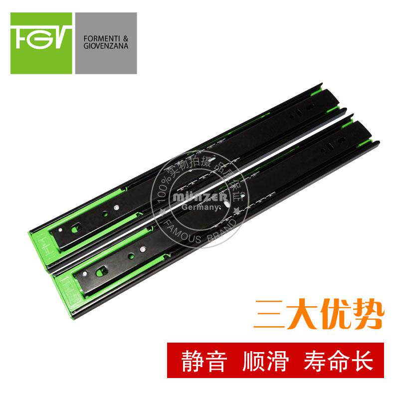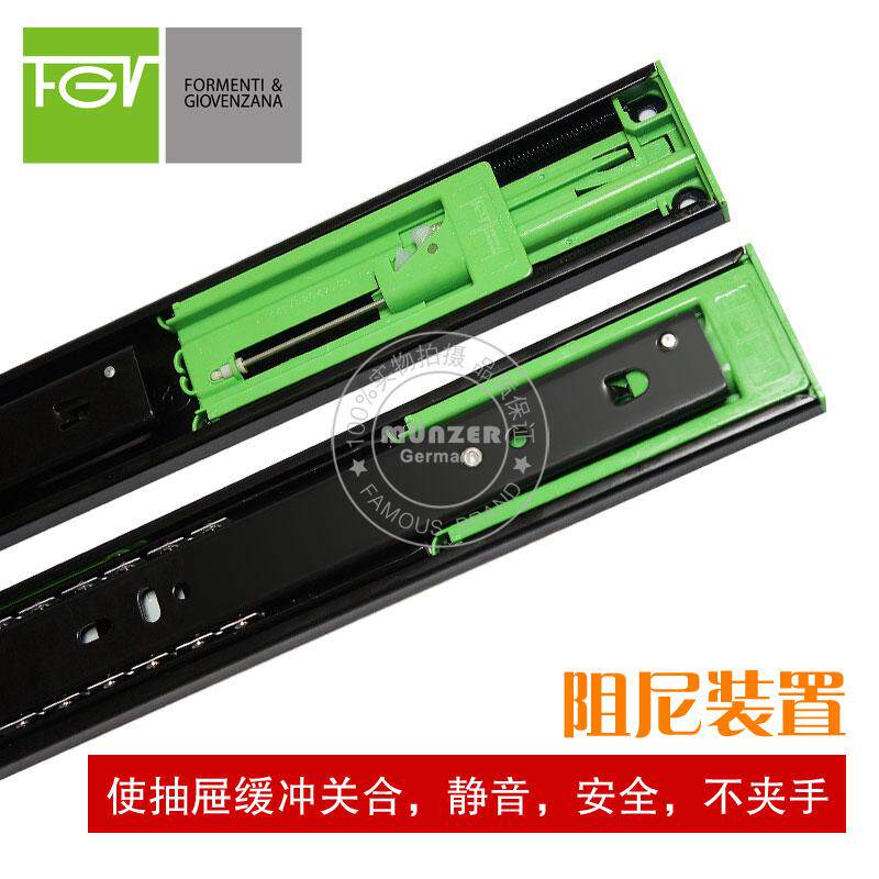 (Italian FGV) 500mm furniture damping drawer slide rail three-section self-closing mute rail hydraulic buffer