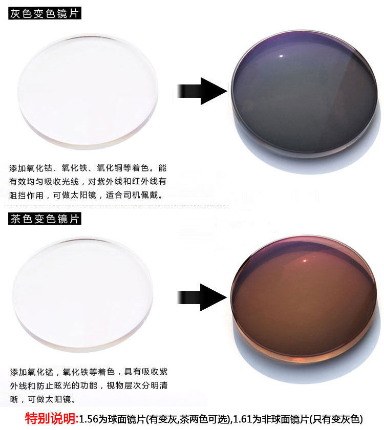 Anti-radiation anti-UV discoloration aspherical lenses