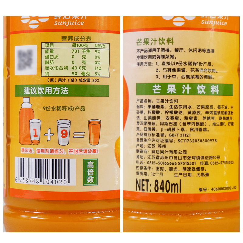 Fresh ultra-high mango juice milk tea shop special 9 times fresh green mango concentrated juice beverage thick pulp 840ml