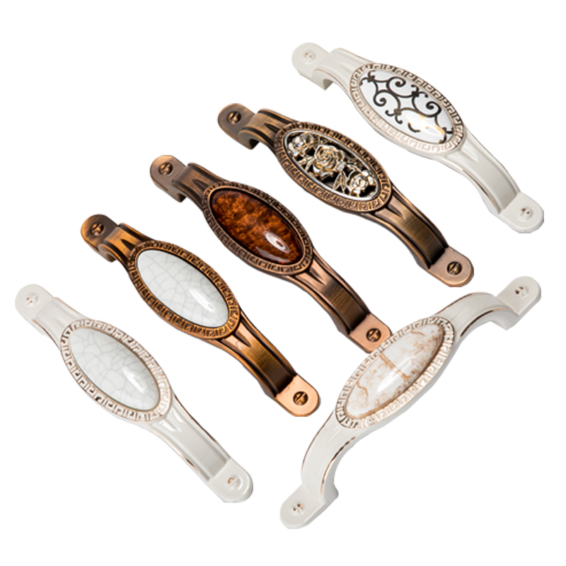 Ivory white ceramic handle European cabinet door drawer handle Bronze Chinese style wardrobe shoe cabinet handle single hole handle
