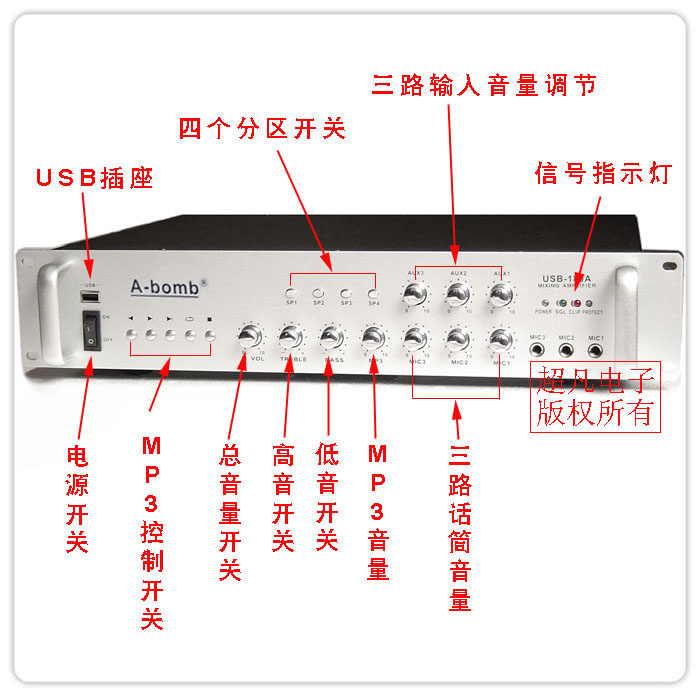 USB Constant Pressure Power Amplification Broadcast Constant Pressure Power Amplifier 500W Four Partition Background Sound Campus Mall Office Building Fire
