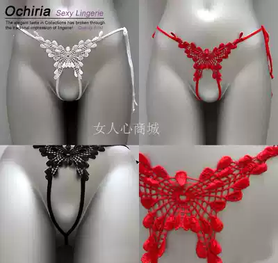 Ou Ziya open crotch thong women's sex underwear transparent real person Real shot sex Home big size T pants