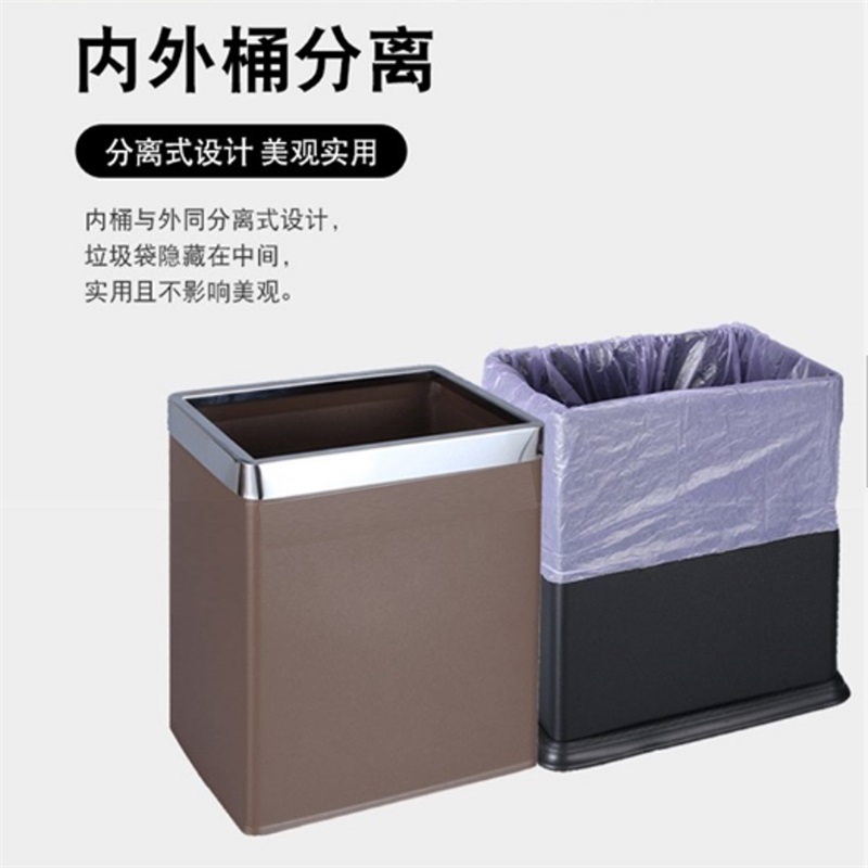 Southern double-layer trash can without lid metal pressure ring rectangular hotel room bucket brown powder room trash can