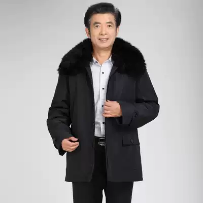 Sheepskin collar sheepskin coat thickened middle-aged and elderly leather coat Fur one-piece men's coat Long-haired lambskin winter cotton coat