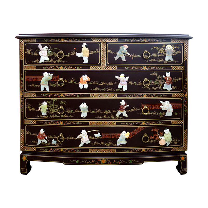 Yangzhou Lacquer Bone Stone Inlay 100 Sub-figure arched Five-bucket closet Decorative Cabinet Customized Neoclassical Lacquer Art Home Decoration