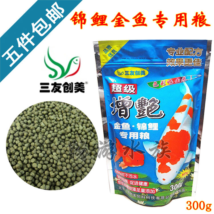 Sanyou Chuangmei Sanyuan Zengyan Koi fish feed Spirulina goldfish food fish food 300g Swim aqua