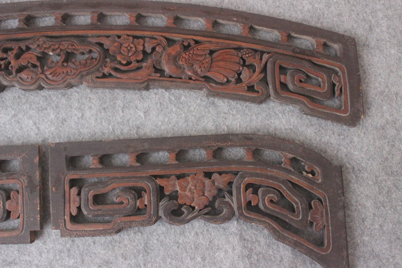 Qing Dynasty Old Wooden Wooden Magpie Flower Statue Hollow Flower Statue Roll Roll Longest 71 cm CK 61